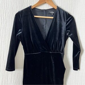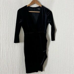 Lulu’s Women's Black Velvet V-Neck 3/4 Sleeve Knee Length Sheath Dress Size S