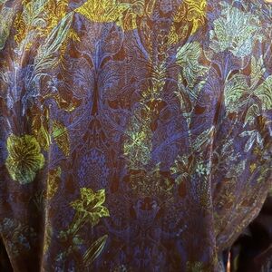 Luxurious velvet bomber with floral design. Rich blue and green hues. Perfect for any occasion.