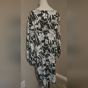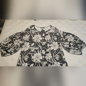 NWT Bryn Walker Floral Print Round Neck Long Sleeve Lantern Dress:Black/White:XL