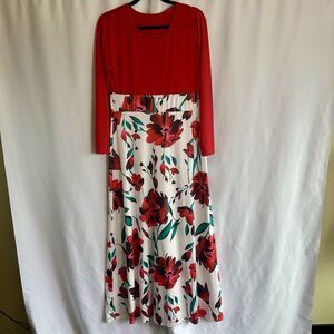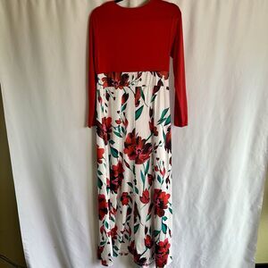 This gorgeous dress in size medium features a floral pattern, long sleeves, and a round neckline. Made of rayon fabric, the dress has a pullover closure and is machine washable. With a maxi length, it is perfect for various occasions such as travel, weddings, parties, casual outings, workwear, and business meetings. The multicolor design and regular fit make it a versatile piece that can be worn in all seasons - winter, summer, fall, and spring.