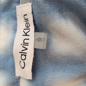 Calvin Klein, Stylish blue and white checkered blouse. Perfect for casual or office wear. Tabbed pockets, vneck, Long Sleeves, Shoulder Tabs, Sz L
