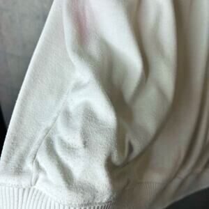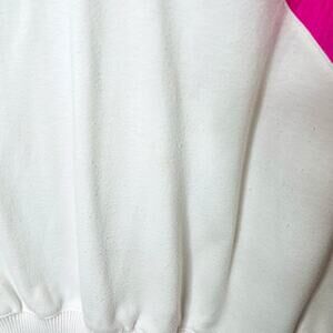 Short sleeve collared shirt. 80's, 90's Era. Polo style. Polyester, cotton blend. Pullover. White, pink, and green color block. Women's M.