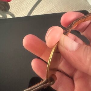 Stylish Margot charm with gold finish and brown leather strap. Ideal accessory for any outfit. Margot engraved charm on coñac color leather strap bag Tagg