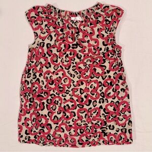 - This eye-catching tunic dress from Hanna Andersson features a leopard print with vibrant pink and flower pattern, perfect for making a bold statement. The sleeveless design and lightweight fabric make it ideal for warm weather or layering. With a rounded neckline and subtle ruching, this dress combines style and comfort effortlessly.