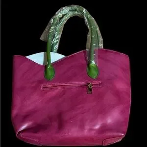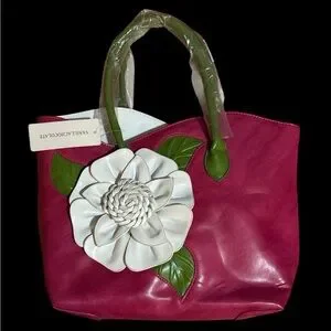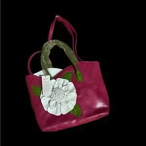 BNWT Vegan Leather Large Pink White Flower Kentucky Derby Bag