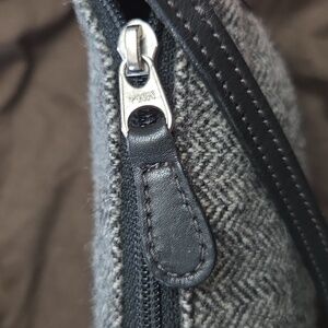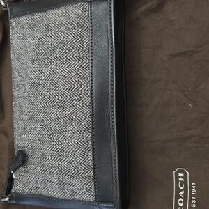 Chic 2019 Coach with a sophisticated black leather with gray wool herringbone pattern. Comes with dusty and hang tag. Amazing pre owned condition