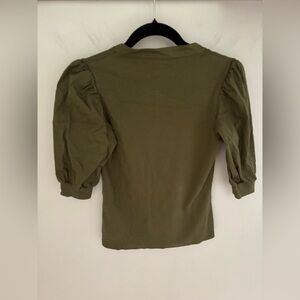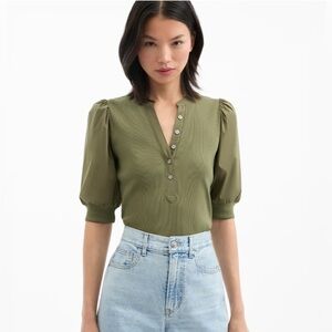 Veronica Beard Coralee Puff-Sleeve Half-Sleeve Henley Top Green stone army Small