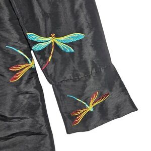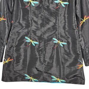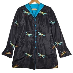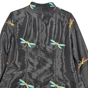La Cera Dragonfly Embroidered Jacket Womens Small Black Longline Art to Wear