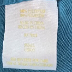 • Design features: Embroidered dragonfly motif throughout, contrasting turquoise collar and lining, knot button closures, flared cuffs