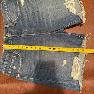 NWT Timeless Levi's shorts in blue denim. Features iconic stitching and frayed hem. Perfect for everyday wear. Size 32 wears more like a 12. Please see pics for measurements. 100% cotton