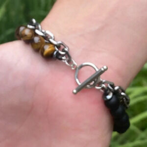 Handmade with real tiger eye stone, volcanic rock, and stainless steel. Please see photo for measurements. Bundle and save. I ship fast!