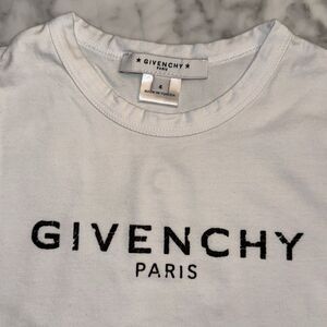 Classic white tee with bold black Givenchy logo. Soft and stylish for any occasion.