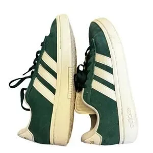 Adidas VL Court 2.0 Sneakers Green Suede White Stripes Men 8.5 US / Women 9.5