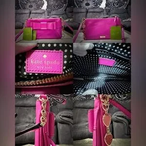 Y2K Kate Spade pink soft leather Fuchsia Crossbody Bag with strawberry keychain , buy this Kate spade give brand new strawberry keychain for free , other people sale $$180-$350, I will do low price $159 , you can make offer , thisY2K Kate spade Crossbody bag used a few times, inside so clean, good condition, almost like a new condition, medium size, is so cute, she is so beautiful, she is ready go to your house