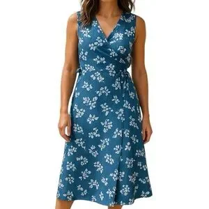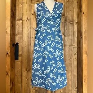 Draper James 8 Sleeveless Denim Wrap Midi Length Dress 100% Cotton