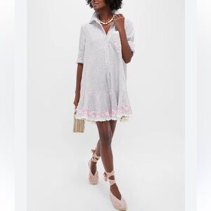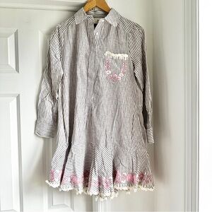 NWT Tuckernuck Callahan Tan Stripe Embroidered Long Sleeve Mini Dress