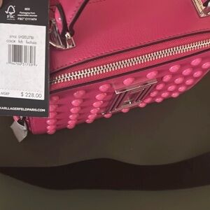 NWT Hot Pink Studded Crossbody Box Bag with Logo Strap