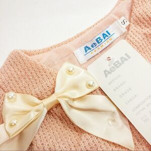 New with tags, sweet pink knit sweater with cream tulle underskirt by AeBAI. Two cream ribbon embellishments on top front. One is missing a pearl accent (see pics).