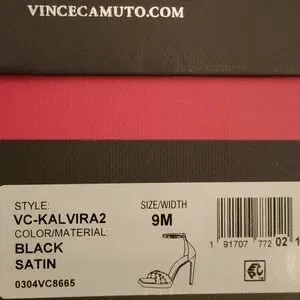 NEW Vince Camuto Kalvira2 Black Satin Stiletto Heeled Strappy Sandal