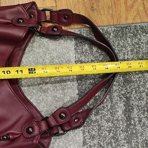 Elegant burgundy tote with studded accents. Features sturdy handles and spacious interior. Perfect for everyday use.