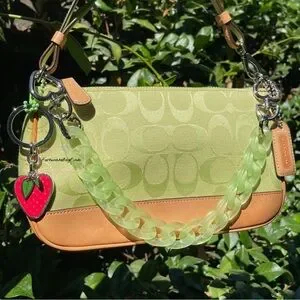 Green Y2K Vintage Coach 6094 Demi Pochette Pouch Mini Bag Strawberry Charm SET