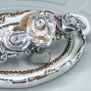 ๐ฅ๐ฅ Handmade Freshwater Keshi Pearl Flower ๐บ Crystal Hair Clip