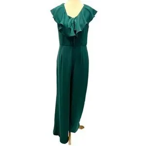 The Impeccable Pig Hunter Green Ruffle V Neck Wide Leg Jumpsuit Women’s Medium