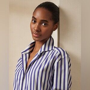 RALPH LAUREN Purple Label collection Blue White Striped Cotton Shirt Sz US 4