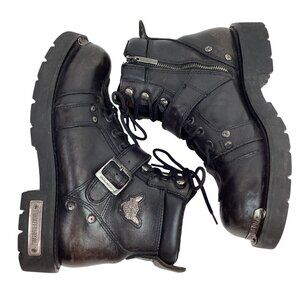 Harley-Davidson Leather Heavy Duty Motorcycle Boots Side Zip Black