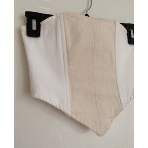 Item: This Bone White Denim Corset from the brand EB Denim x Revolve is the perfect top to wear all year round.