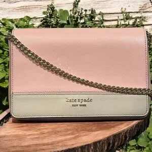 Kate Spade Pink & Grey Saffiano Leather Chain Crossbody Bag EUC