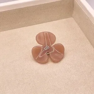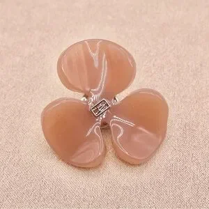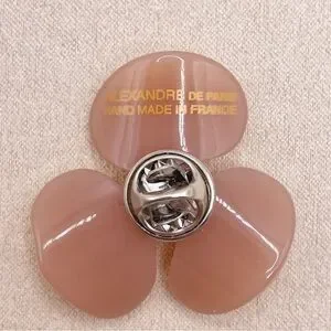 Alexandre de Paris Brooch shaped in a pink flower with 3 petals. On the back of one petal wrote ALEXANDRE DE PARIS HAND MADE IN FRANCE. The color of the brooch in reality is more like muted coral pink than brownish in the photo.