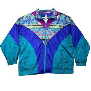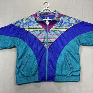 VTG Bolo Spirit Windbreaker Jacket Womens L Retro Colorful Full Zip Floral 80's. Nice preowned condition. See pictures for measurements.