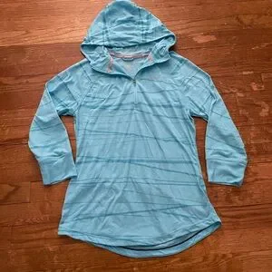 Good condition Nike Dri-Fit pullover hoodie with 3/4 sleeve , half zipper , small pocket located in the back of hoodie . Keeps you dry and comfortable great for running or the gym