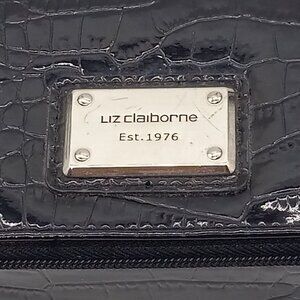 Liz Claiborne Black Faux Croc Jewelry Travel Bag Pouch Organizer Zipper