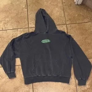 Stay cozy and stylish with this dark gray hoodie featuring a vibrant green logo. Perfect for casual outings and everyday wear.