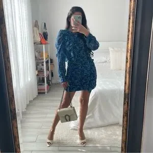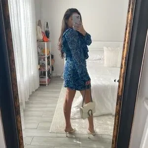 ZARA Blue & Black Floral Long Sleeve Dress