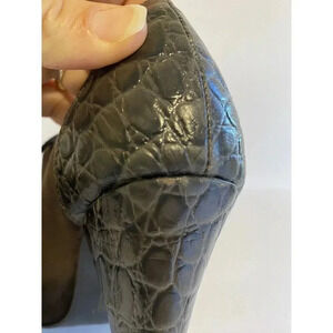 These Rebecca Blue high-heeled shoes in brown suede are a stylish choice for various occasions such as weddings, parties, or workwear. Featuring a pointed toe with lace-up closure and croc-embossed accents, these pumps have a cone heel for a fashionable look. Crafted from leather, these shoes are perfect for the summer, fall, or spring seasons, adding a touch of sophistication to any outfit in size EU40/US9. Ideal for a night out or a day at the office, these shoes are versatile and on-trend.