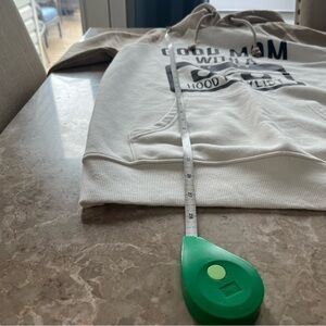 Stay stylish and comfortable with this tan and cream graphic hoodie. Perfect for casual outings.