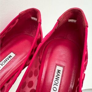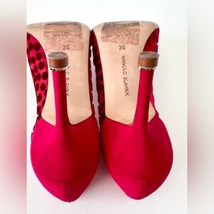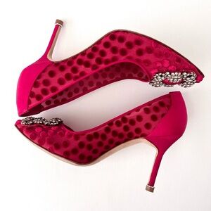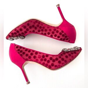 MANOLO BLAHNIK || Red Silk Polka Dot Hangisi Jewel Buckle Embellished Pumps 36