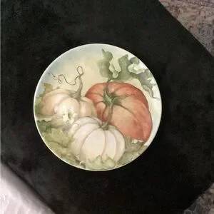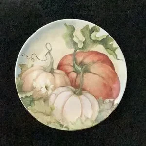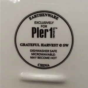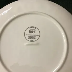 Pier1 discontinued plate in the Grateful Harvest pattern Elegant earthenware plate with pumpkin design. Ideal for seasonal gatherings. This is the 11” dinner plate in excellent like new condition no chips cracks or glazing. Dishwasher and microwave safe. Please See photos for a better description