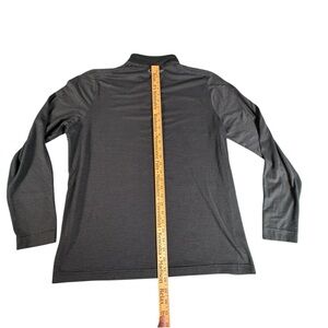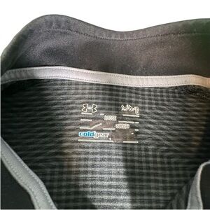 Stay warm and active in this Under Armour ColdGear 1/4 zip pullover. Designed with performance in mind, it features a lightweight, stretchy material that wicks moisture and keeps you comfortable in cold weather. The sleek gray and black stripe pattern pairs easily with any gear. Size men’s large – see photos for measurements.