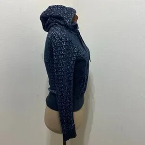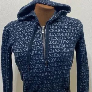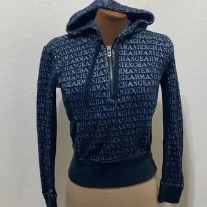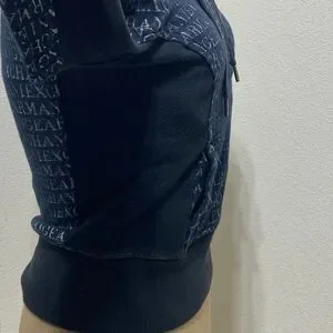 Armani Exchange Black/Silver Hoodie Size XS Quarter Zip Kangaroo Pocket