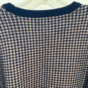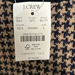 NWT J. CREW Sz L Lamb Wool Houndstooth Crewneck Brown /Navy Blue Preppy Sweater