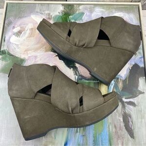 Eileen Fisher Bella Leather Wedge Sandals in Grey Size 9.5 New!