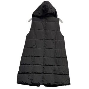 Kafuna Women's Longline Black Puffer Gilet Vest Hooded Quilted Sleeveless Medium
