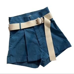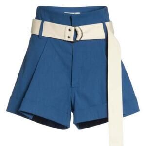 A canvas D-ring belt cinches the ultra-high waist of crisp pleated shorts that exude a hint of nautical appeal.