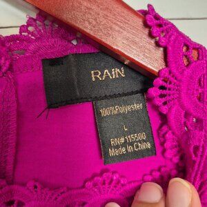 Rain Womens Fuchsia Crochet Lace Cap Sleeve Blouse L