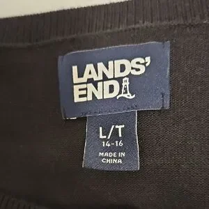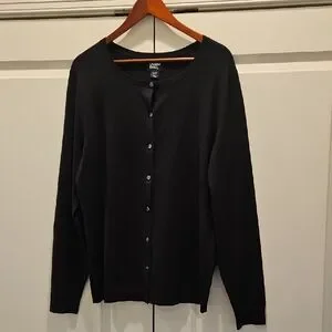 Land's End black cardigan with button-up design. Soft and cozy material. Size: large/tall. measures 21" across chest, Sleeve length is 25", overall length is 28". Excellent condition, from a non-smoking home.