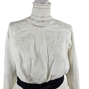 Antique c. 1905 white embroidered linen bodice skirt petticoat Volup